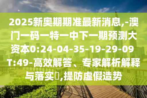 2025新奧期期準(zhǔn)最新消息,-澳門(mén)一碼一特一中下一期預(yù)測(cè)大資本0:24-04-35-19-29-09 T:49-高效解答、專(zhuān)家解析解釋與落實(shí)?,提防虛假造勢(shì)