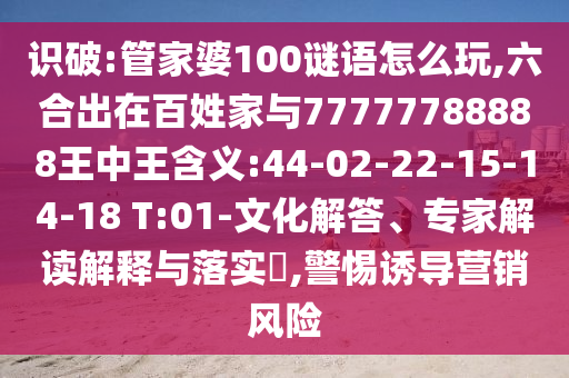識(shí)破:管家婆100謎語(yǔ)怎么玩,六合出在百姓家與77777788888王中王含義:44-02-22-15-14-18 T:01-文化解答、專家解讀解釋與落實(shí)?,警惕誘導(dǎo)營(yíng)銷風(fēng)險(xiǎn)
