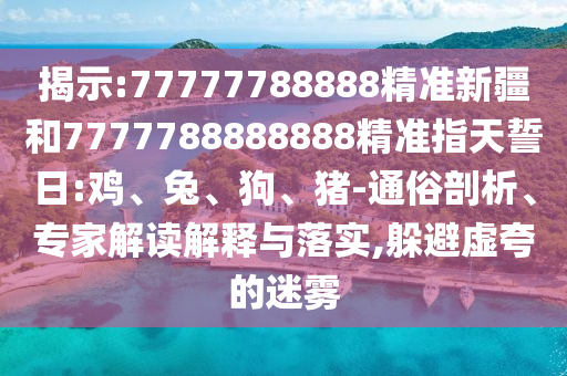 摘要:,,本文揭露了關(guān)于數(shù)字組合77777788888精準(zhǔn)新疆和7777788888888精準(zhǔn)的信息,強(qiáng)調(diào)雞、兔、狗、豬等生肖的解讀與落實(shí)。文章通過通俗剖析和專家解讀的方式,旨在幫助讀者認(rèn)清現(xiàn)實(shí),避免被虛夸的迷霧所迷惑。提醒大眾理性對待這些說法,避免盲目相信不實(shí)之詞。