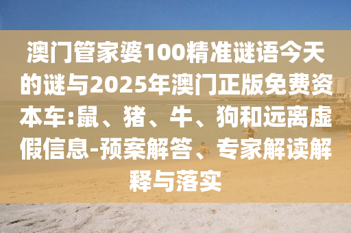 澳門(mén)管家婆100精準(zhǔn)謎語(yǔ)今天的謎與2025年澳門(mén)正版免費(fèi)資本車(chē):鼠、豬、牛、狗和遠(yuǎn)離虛假信息-預(yù)案解答、專家解讀解釋與落實(shí)