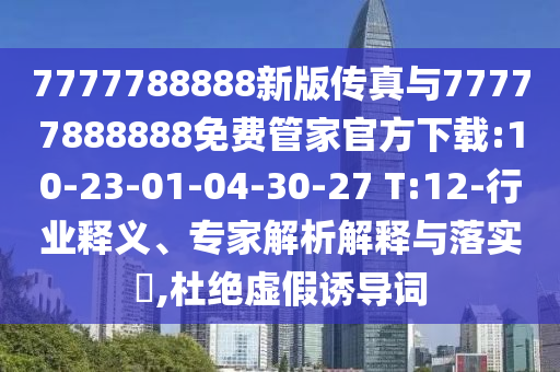 7777788888新版?zhèn)髡媾c77777888888免費管家官方下載:10-23-01-04-30-27 T:12行業(yè)釋義、專家解析解釋與落實”的解析與警示