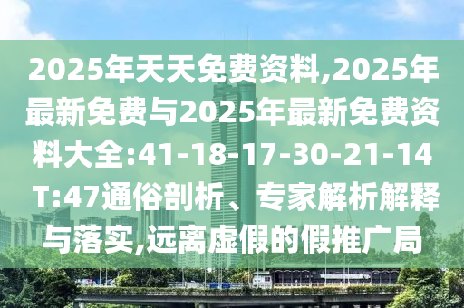 2025年天天免費資料,2025年最新免費與2025年最新免費資料大全:41-18-17-30-21-14 T:47通俗剖析、專家解析解釋與落實,遠離虛假的假推廣局